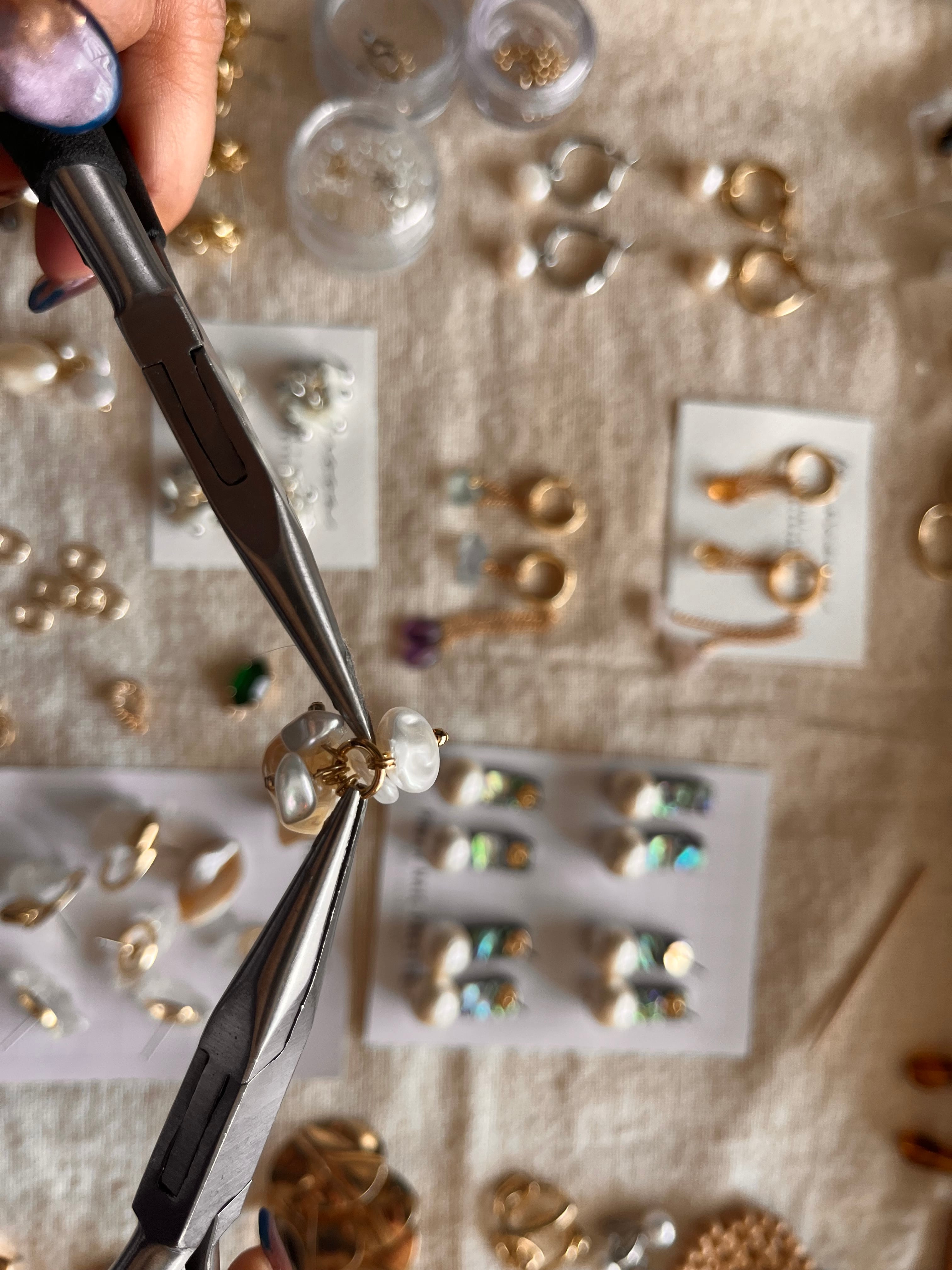 天然石水晶の ドロップ型タンブルシリーズ。 こちらは付け外しが可能で ◯フープピアス ◯フープピアス+ガラスビーズ ◯フープピアス+ガラスビーズ+天然石 の3wayタイプです。 日々の気分で使い分け下さい。 ピアス/イヤリングをお選び頂けます