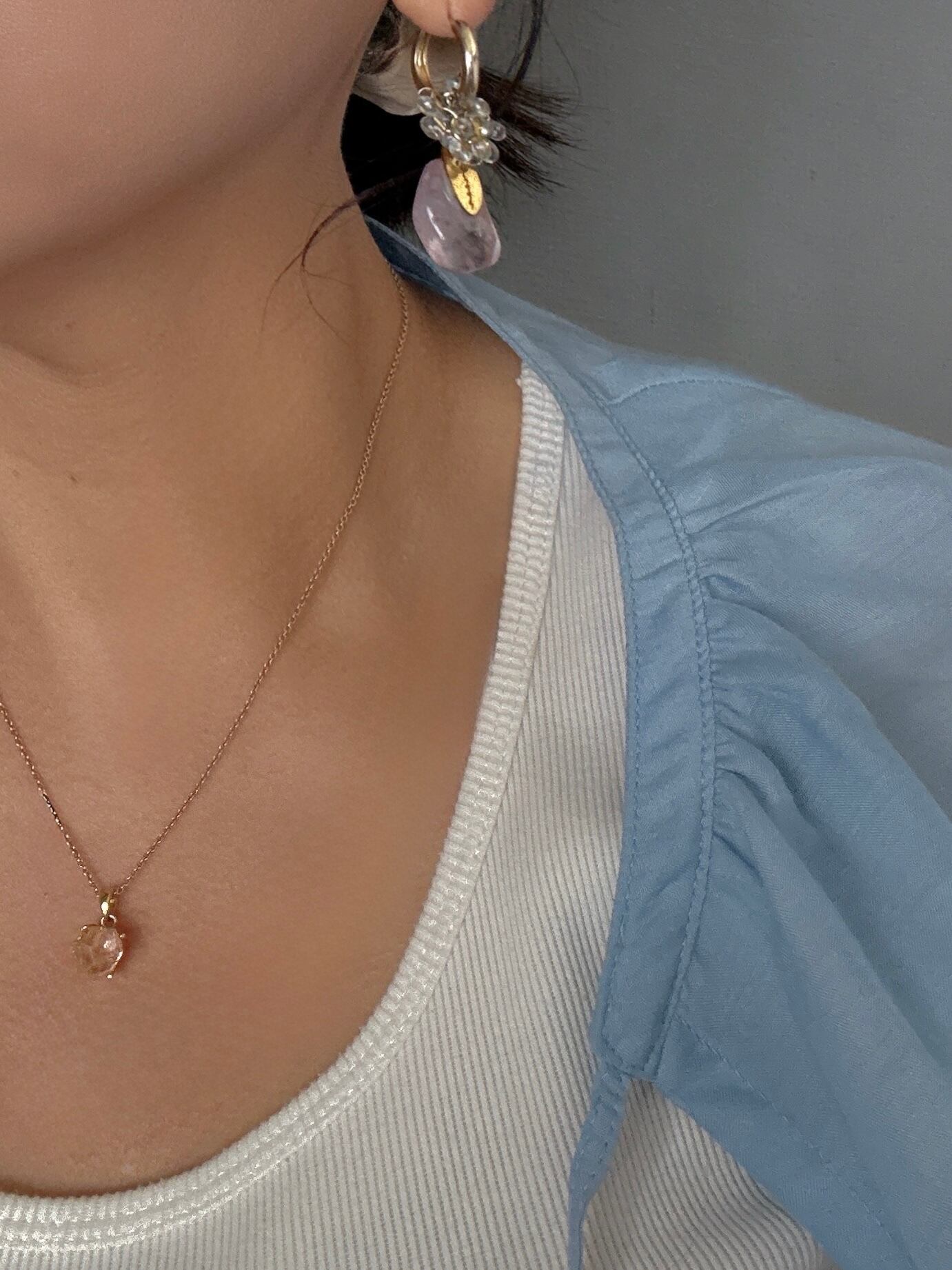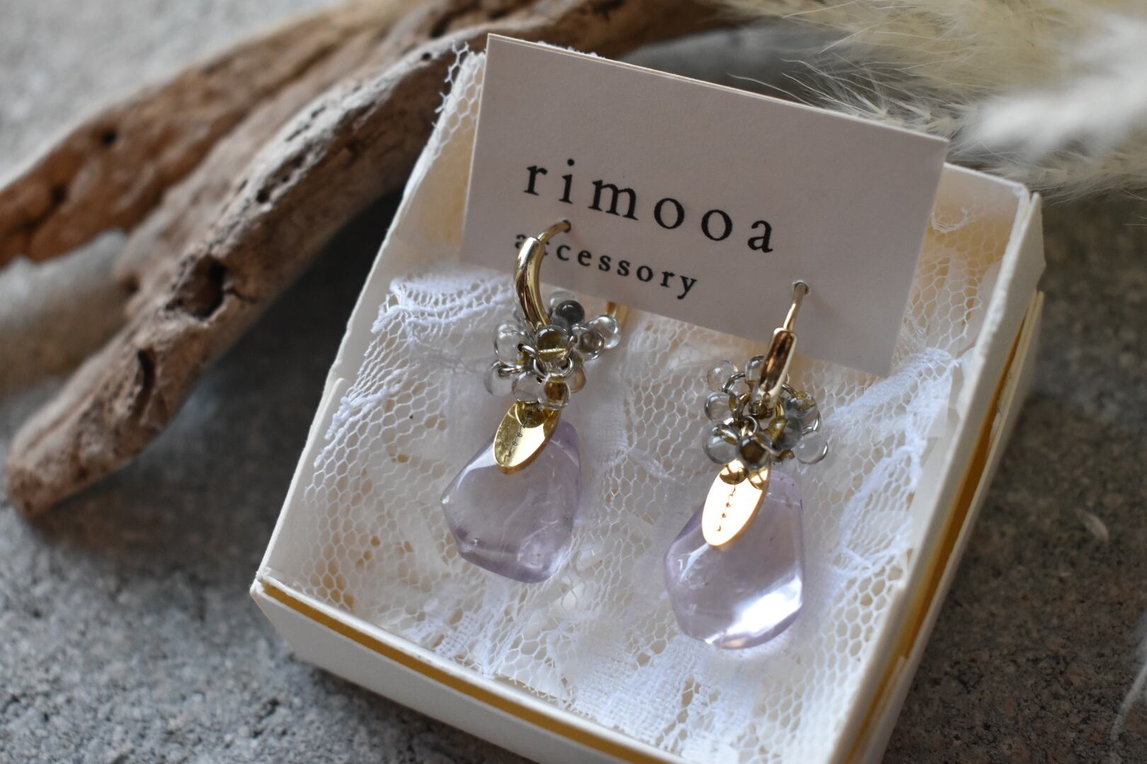 ◯フープピアス+ガラスビーズ+天然石